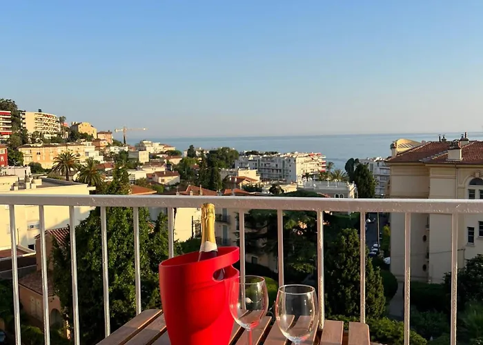 Appartement Vue Mer T2 Cosy, Plage à pied 3 mins, Coucher de Soleil, Parc privé Nice